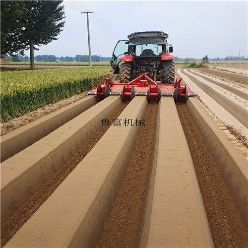 四輪懸掛式大蔥開溝機廠家定做,山東菏澤曹縣魯富機械多功能開溝機 是萬能公司專利產品,四溝大蔥開溝機配動100馬力以上拖拉機。一天開溝50-100畝是小型開溝機的十幾倍。開溝機還可加施肥 滴灌 播種等多種功能一次成型。